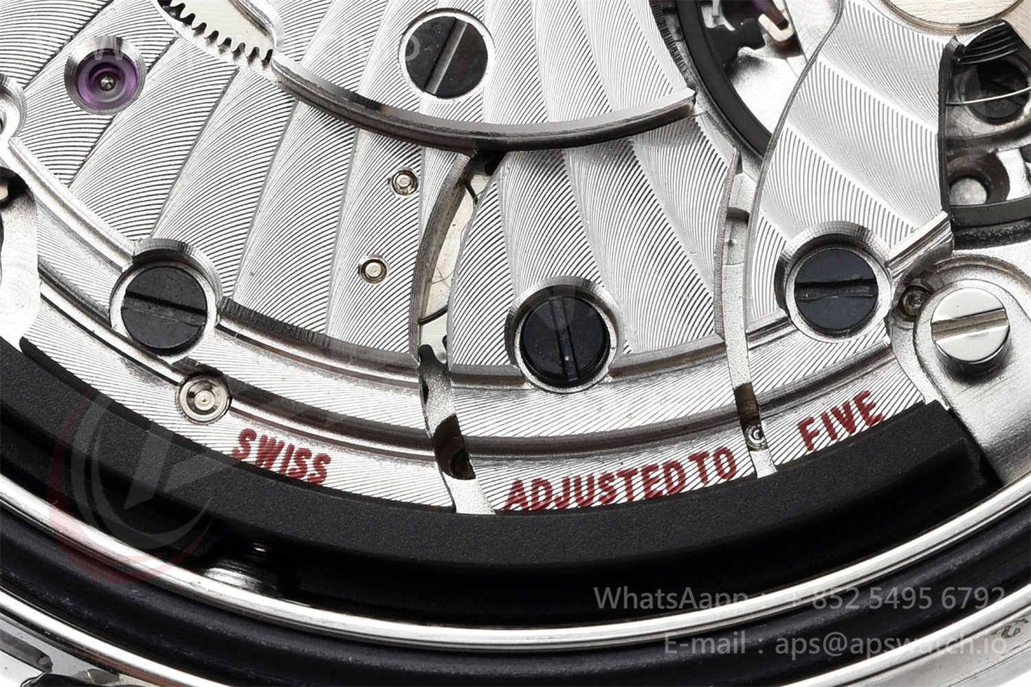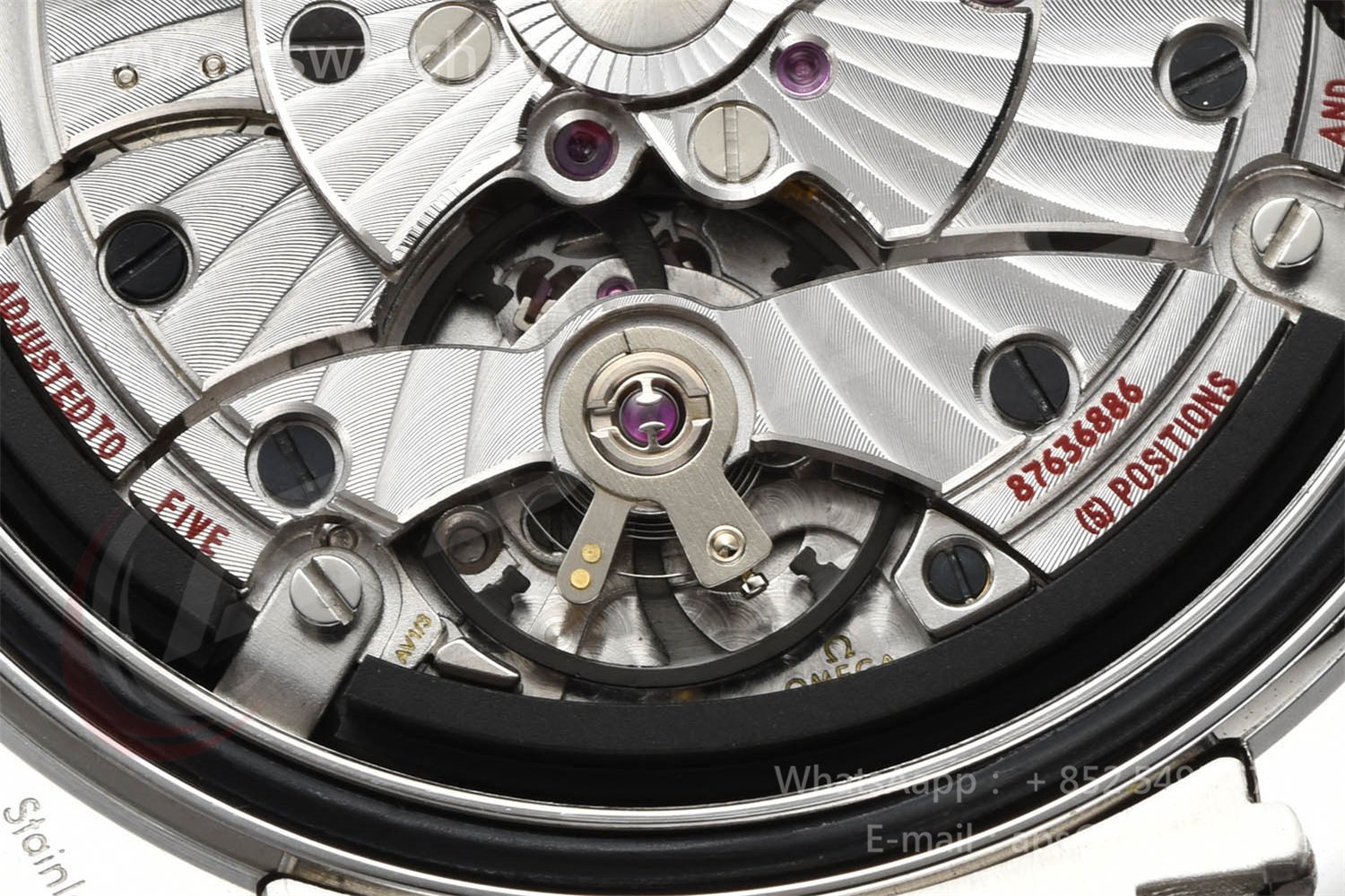 | Movement | Platinum Plated Super Clone Asia A8500 Automatic, Decorated insignia rotor, All markings of Omega Calibre 8500 present | ||