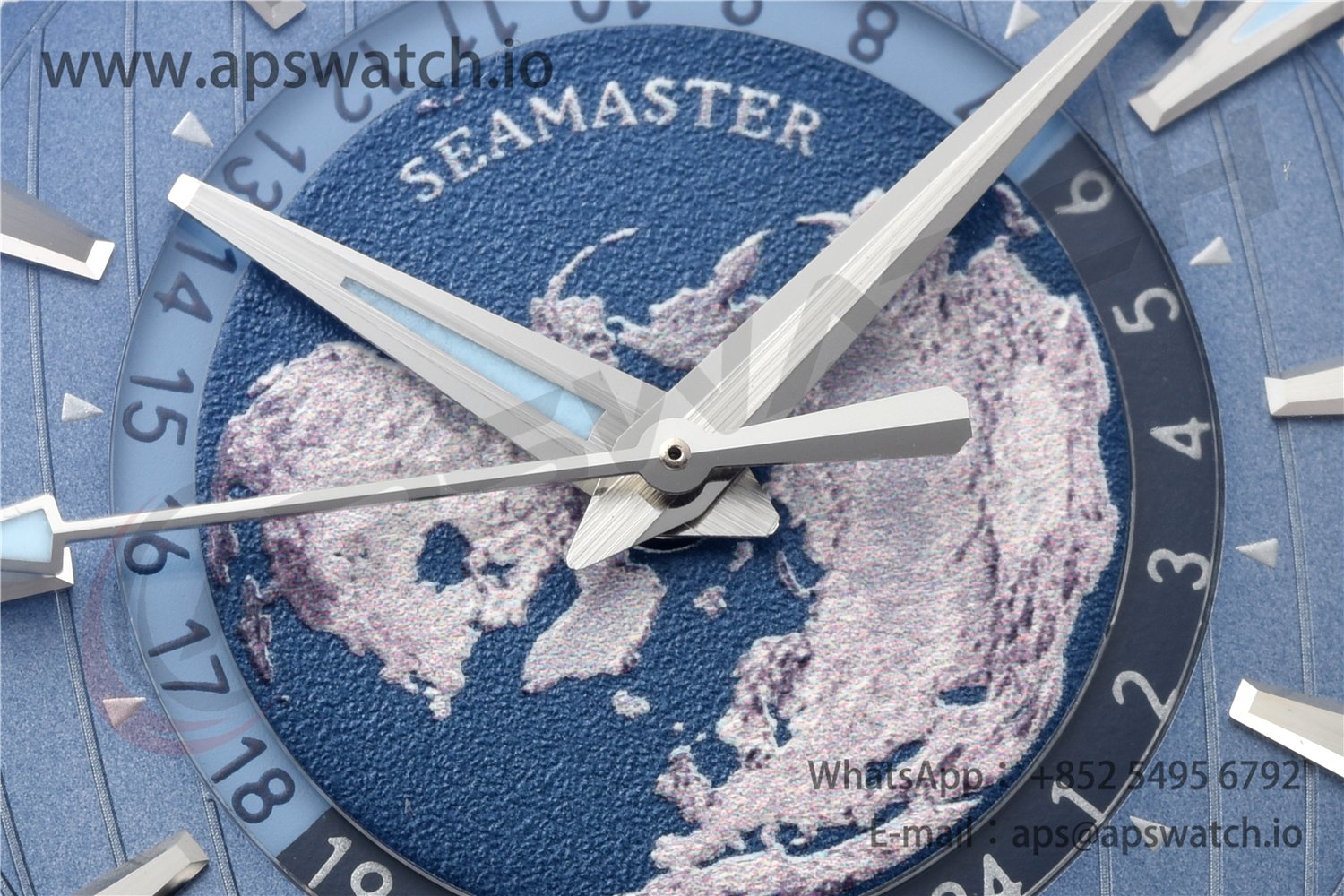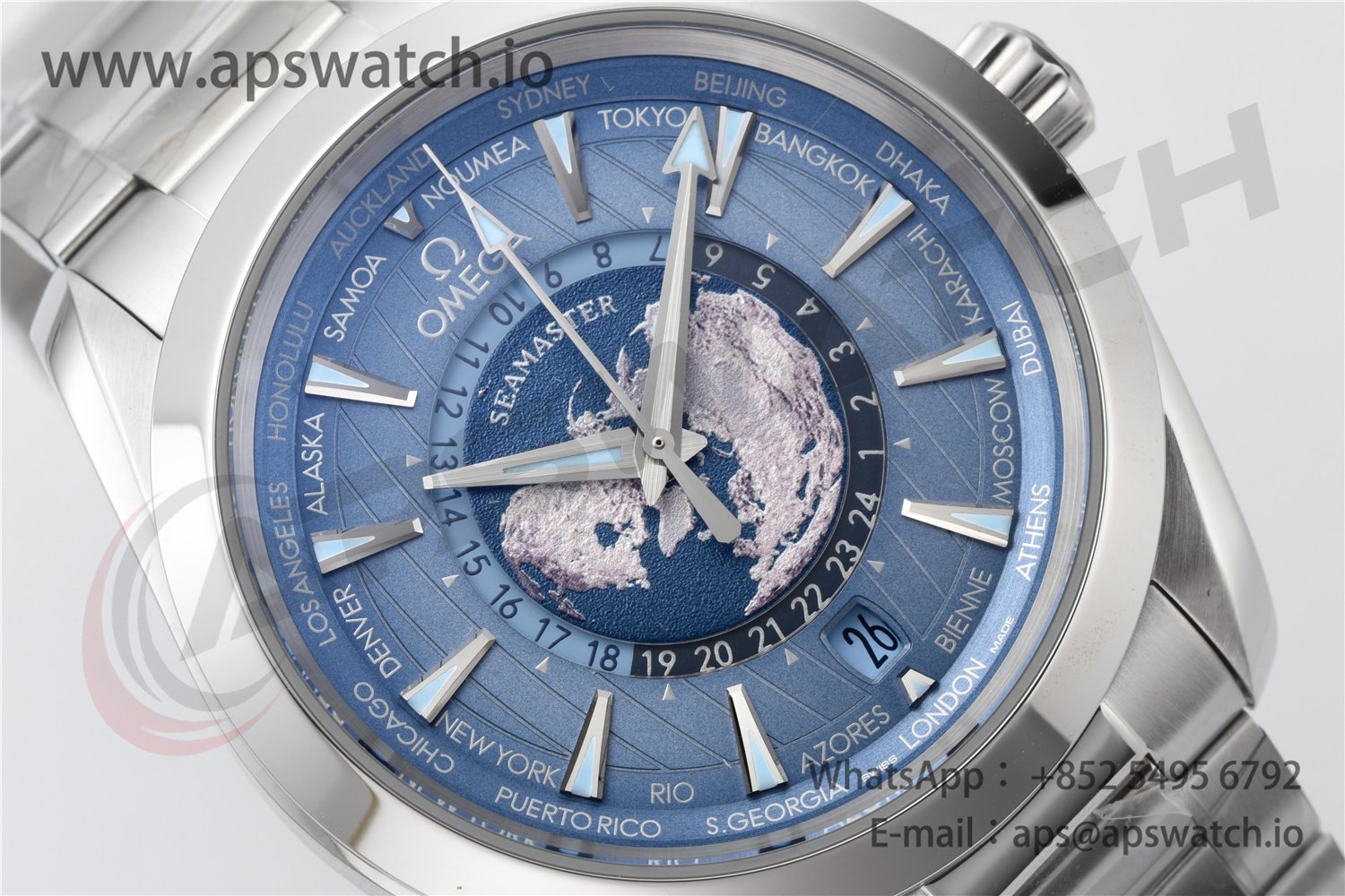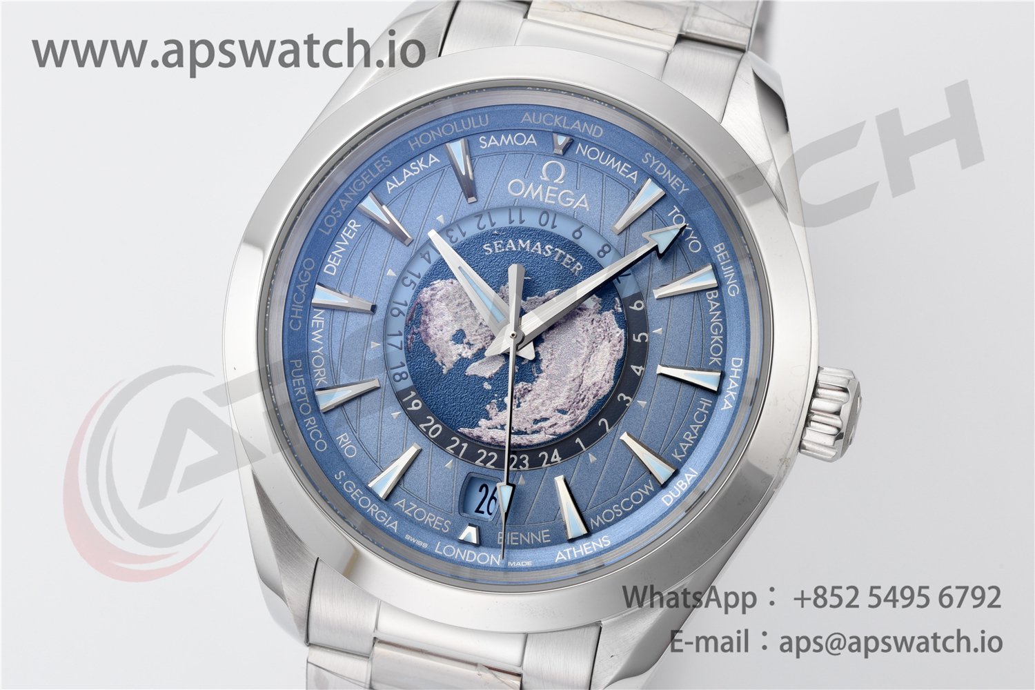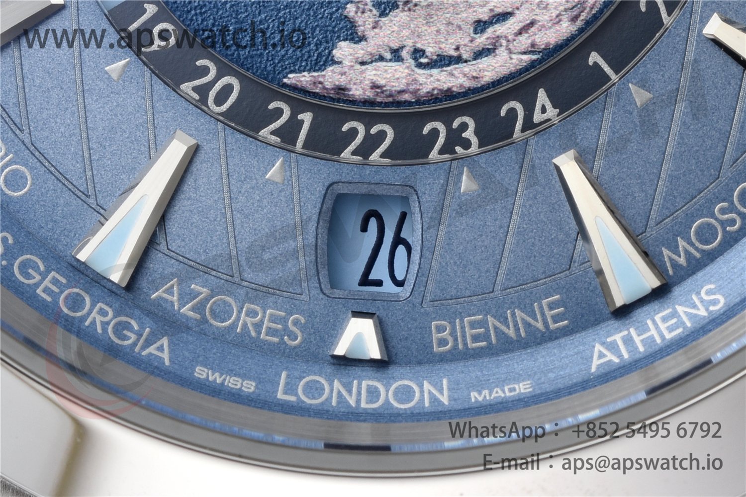 Aqua Terra GMT Worldtimer 43mm VSF 1:1 Best Edition Summer Blue Dial on SS Bracelet A8938 Super Clone