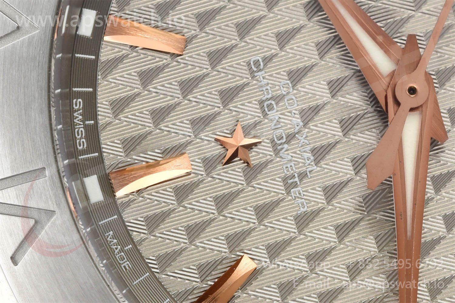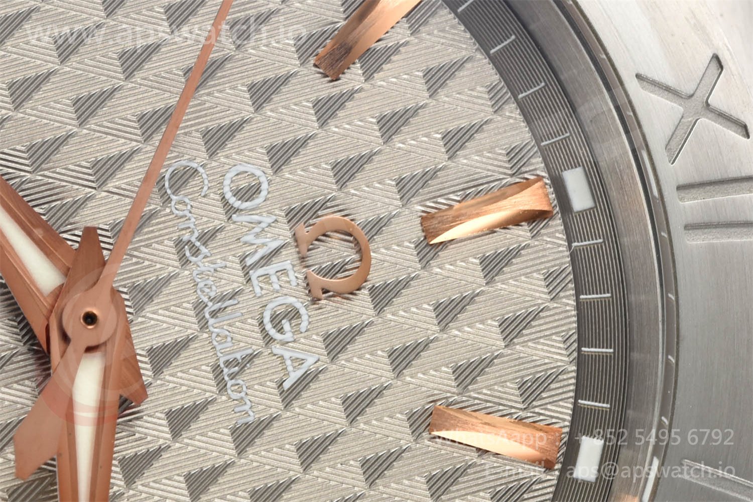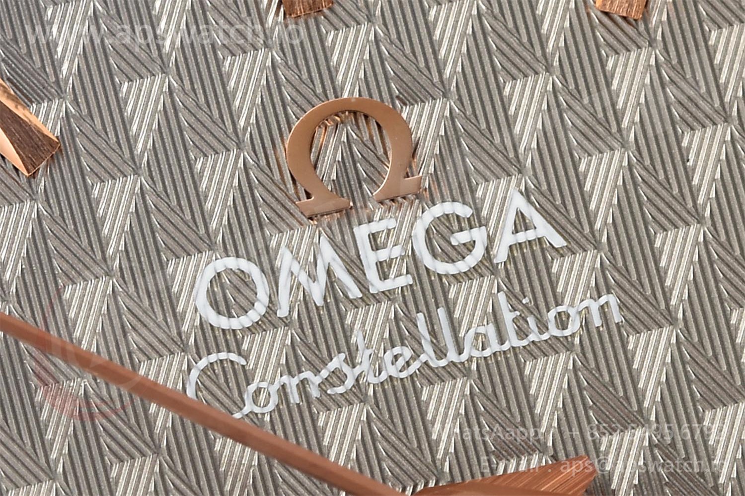 | Movement | Platinum Plated Super Clone Asia A8500 Automatic, Decorated insignia rotor, All markings of Omega Calibre 8500 present | ||