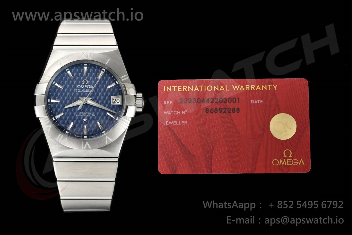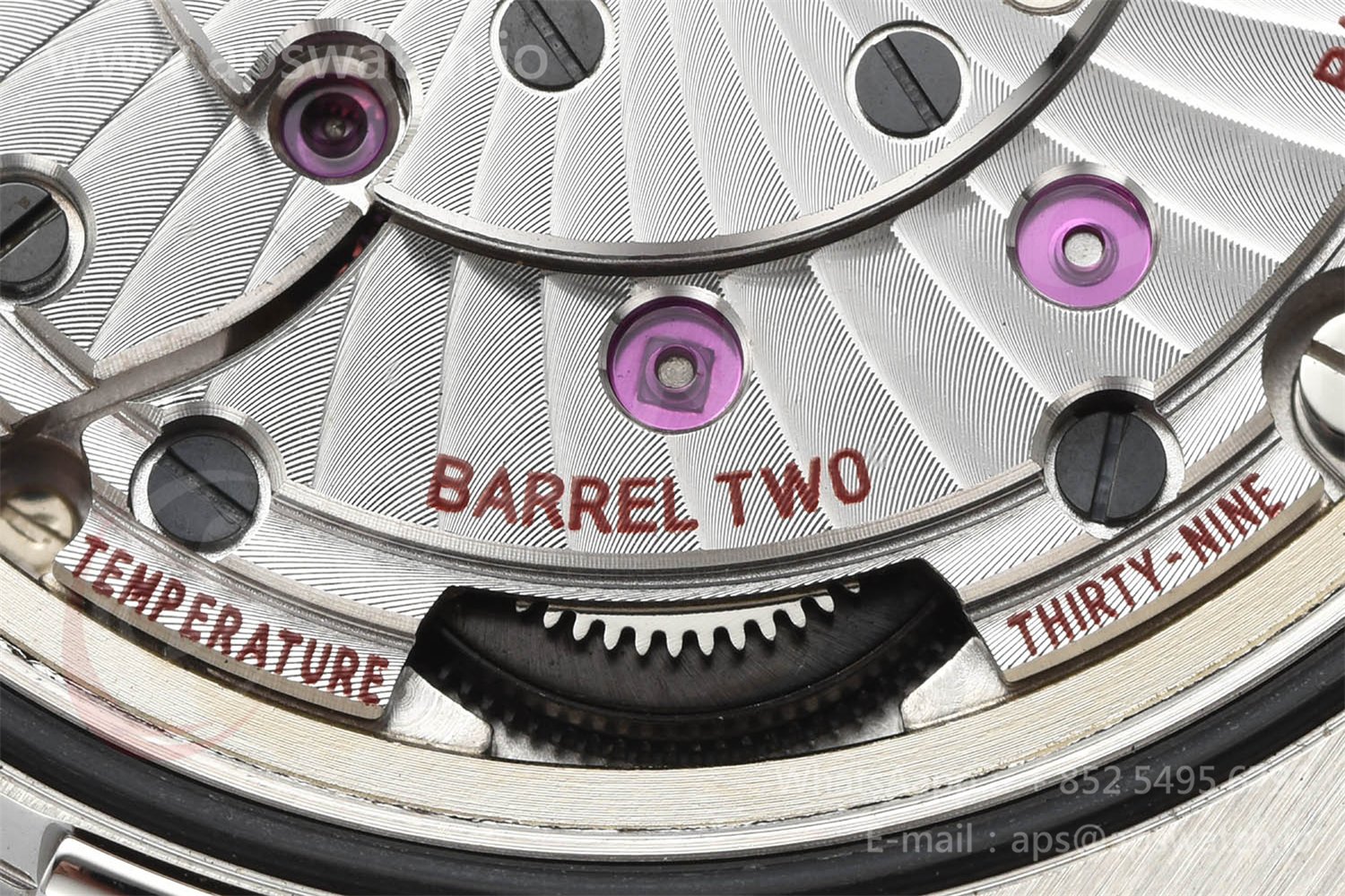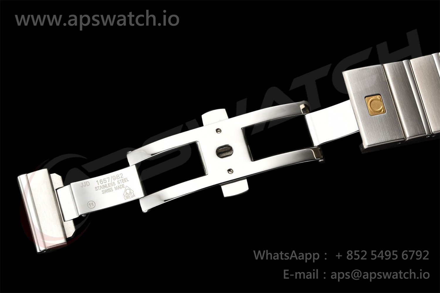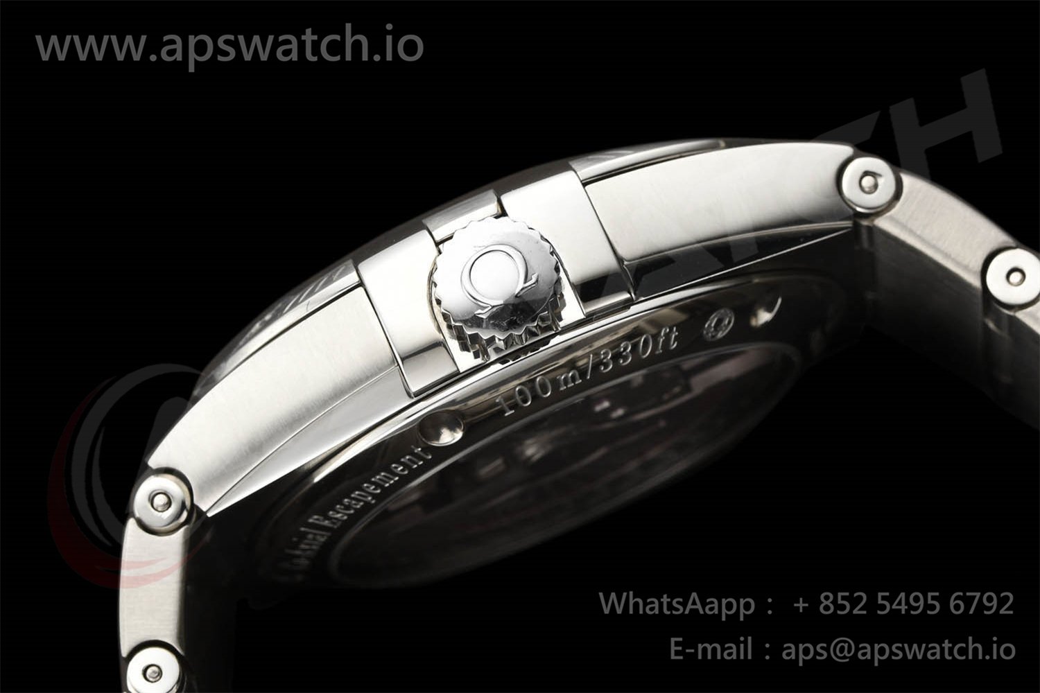 | Movement | Platinum Plated Super Clone Asia A8500 Automatic, Decorated insignia rotor, All markings of Omega Calibre 8500 present | ||