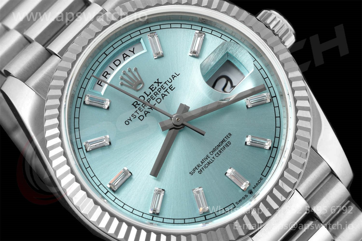 Day Date 36 SS QF 1:1 Best Edition 904L Ice Blue Crystal Dial on President Bracelet VR3255 V3