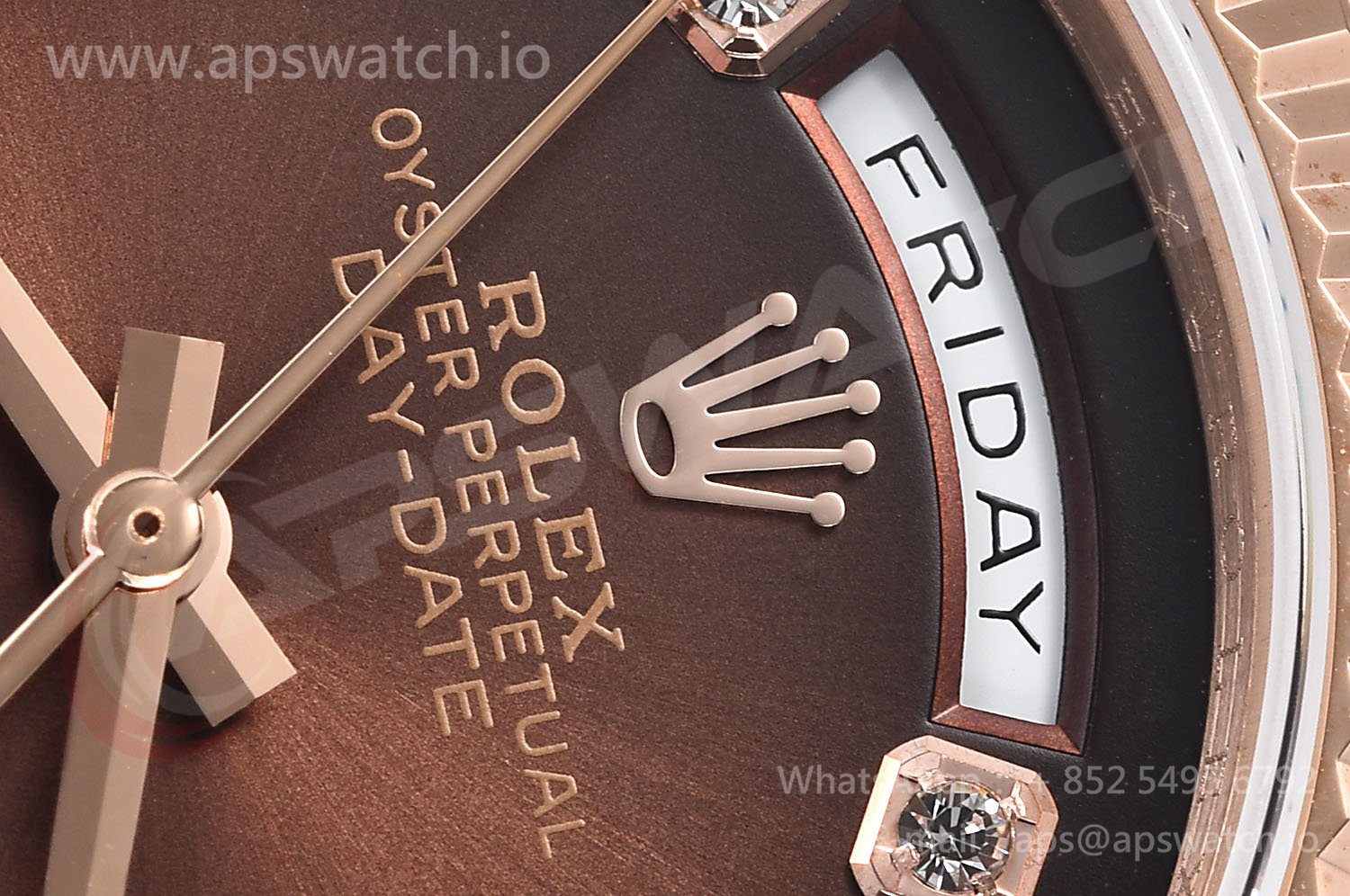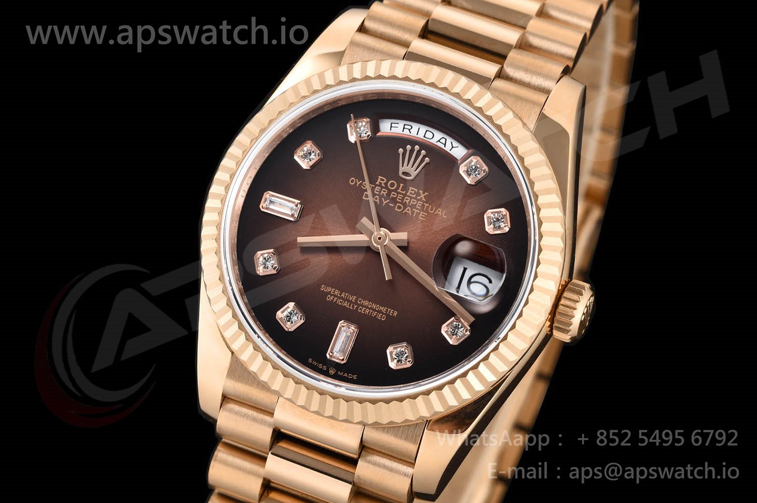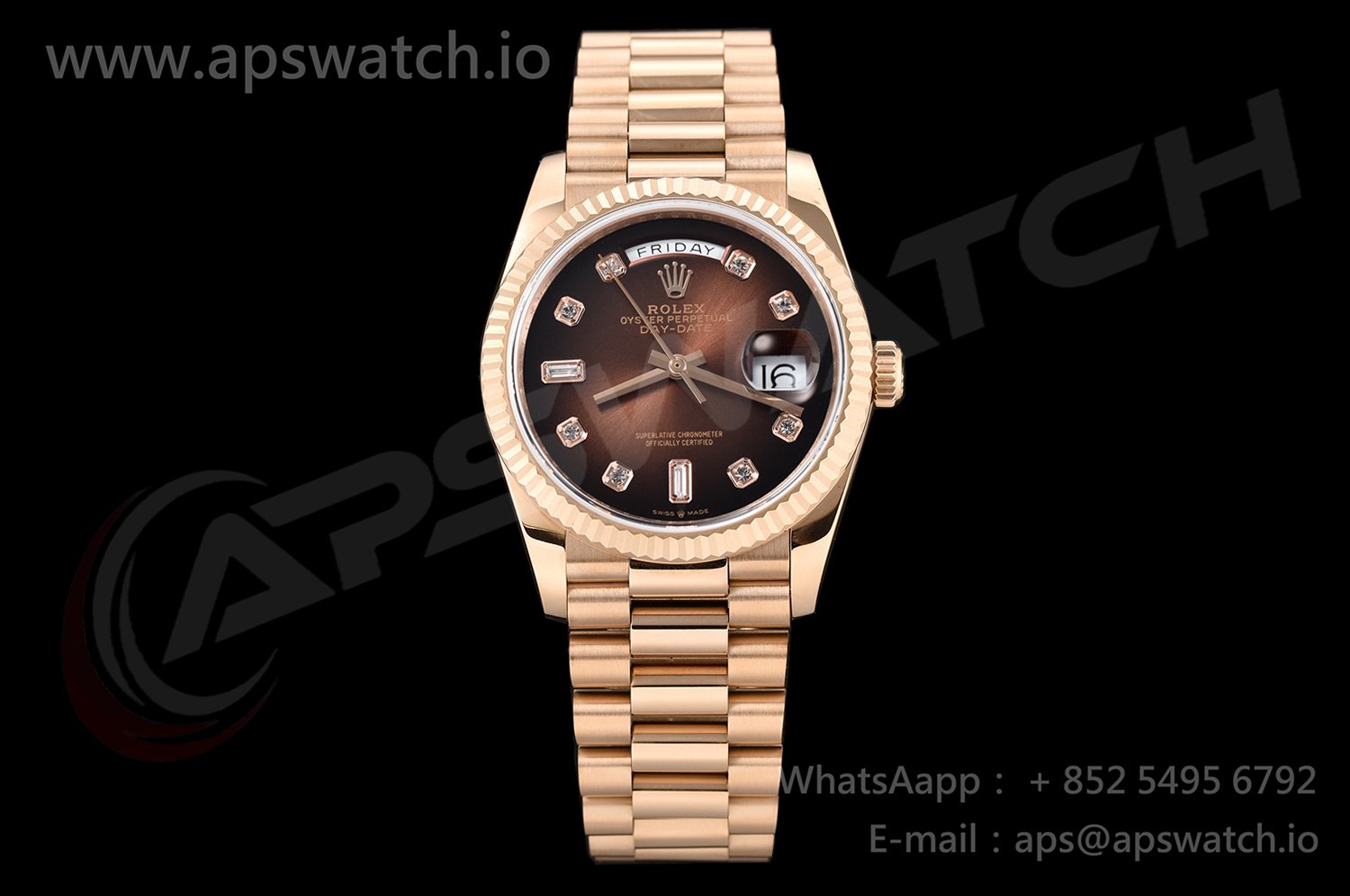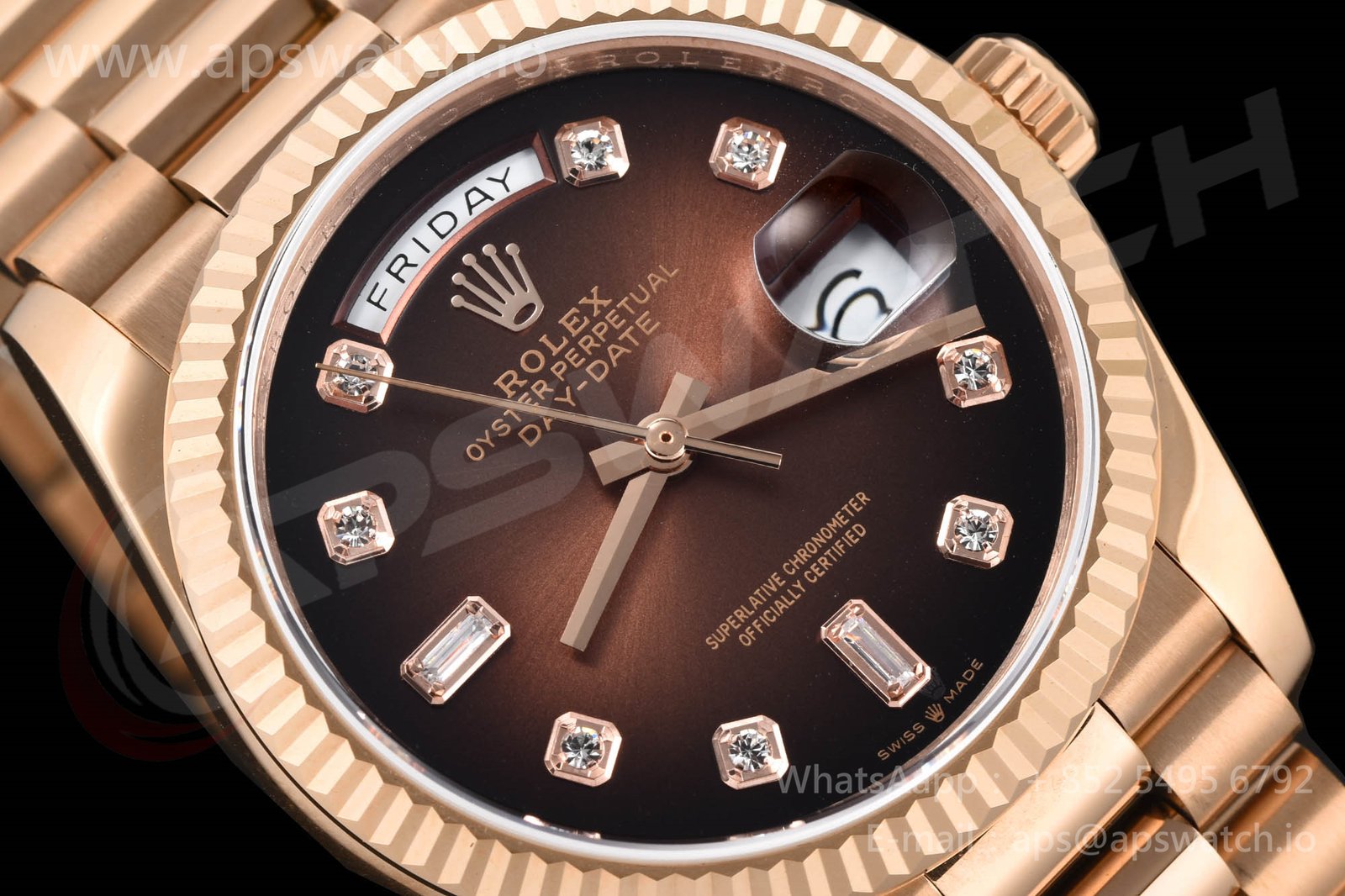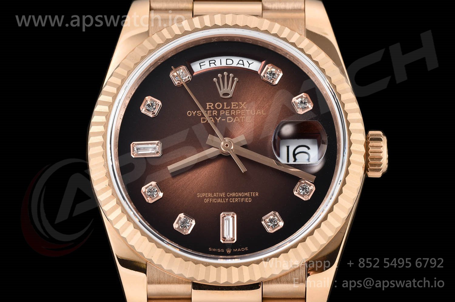 Day Date 36 RG QF 1:1 Best Edition 904L Steel Brown Ombre Diamonds Dial on President Bracelet VR3255 V3