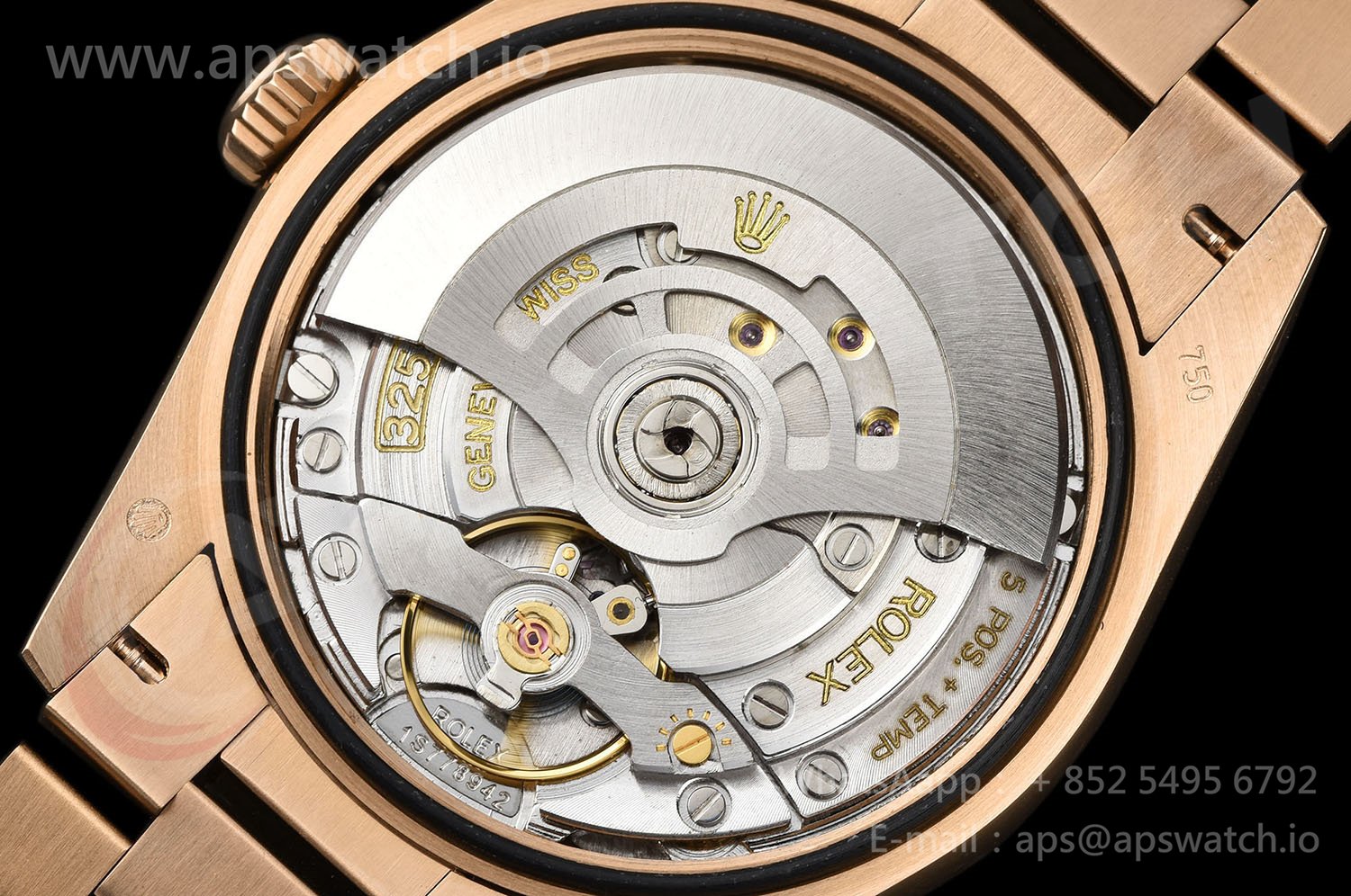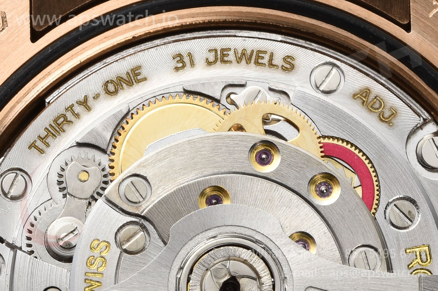 | Case | 18k rose gold plated solid 904L stainless steel case | ||