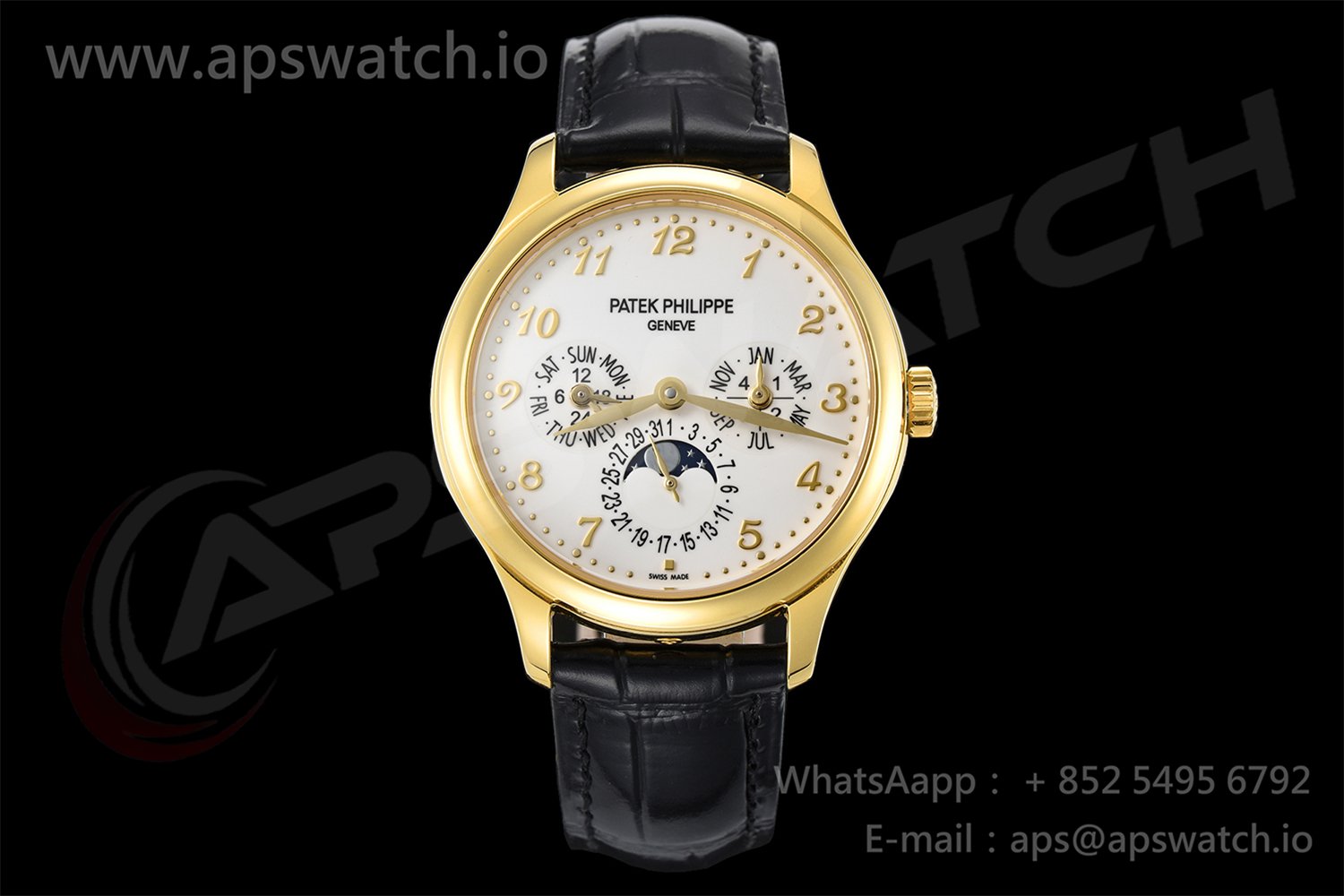 Perpetual Calendar 5140 YG 3KF Best Edition White Numeral Dial on Black Leather Strap A240