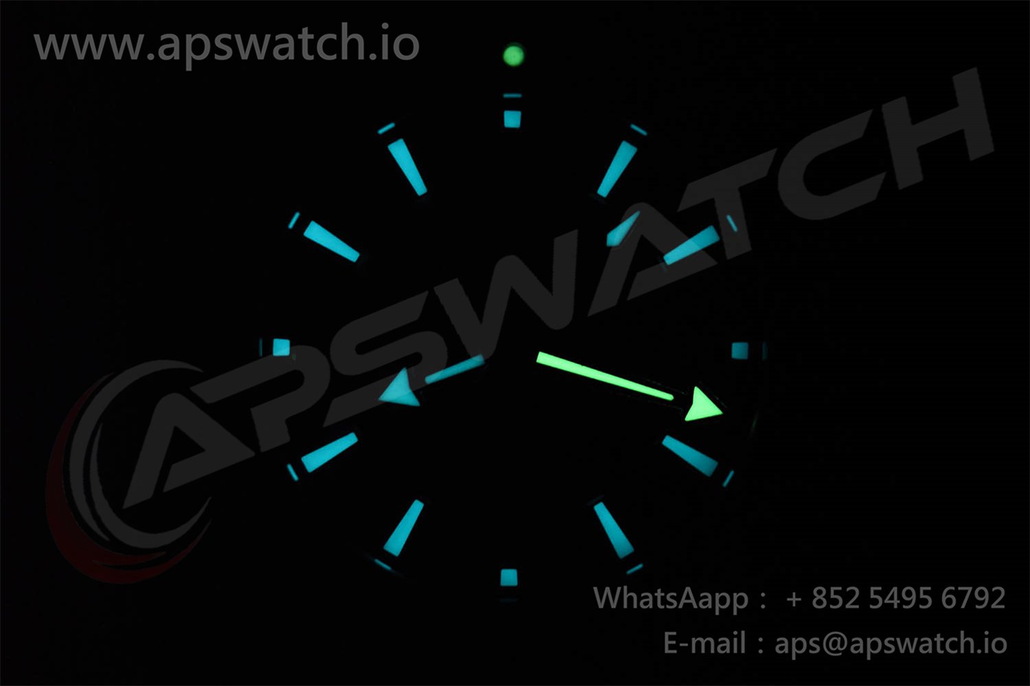 | Dial | Black Dial with Orange Numerals & Stick Markers (Swiss Grade Superlume applied – Needles in Green & Dial Markers in Blue) | ||