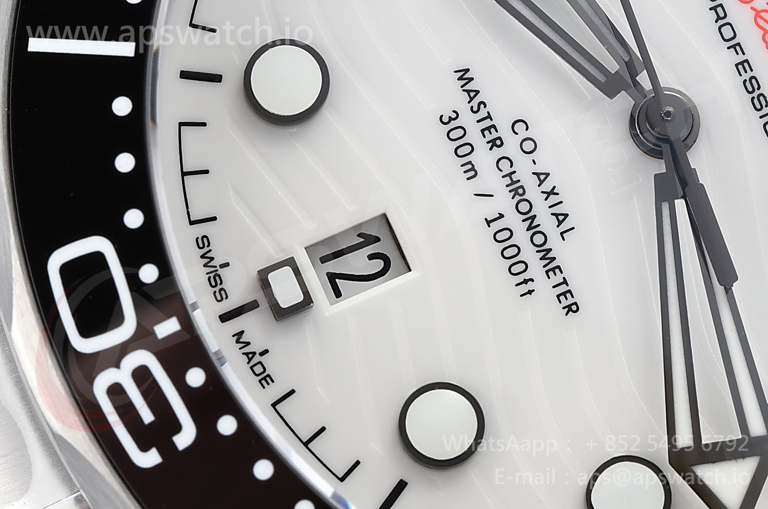 | Dial | White Ceramic Base Plate Dial (Wavy Textured) with Large Dot Markers (Blue Superlume Applied for the Dial markers & Green Superlume applied for the Needles) | ||
