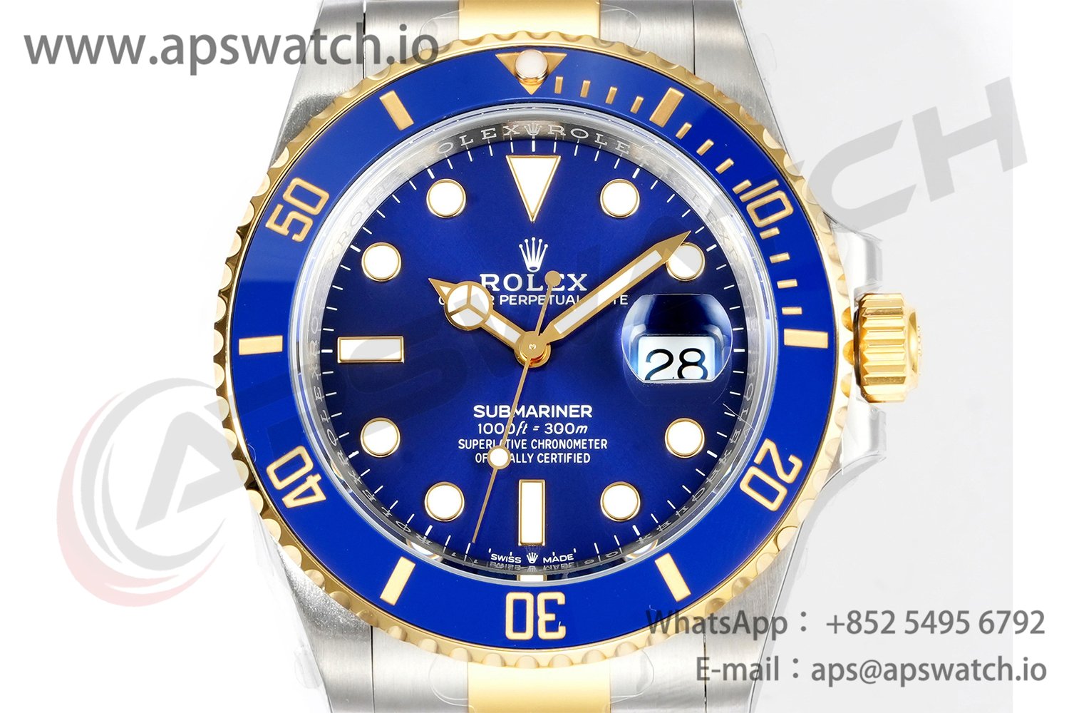 | Strap | Two Tone 18K Yellow Gold Plated Solid Stainless Steel 904L with Flip Lock Deployant Buckle | ||